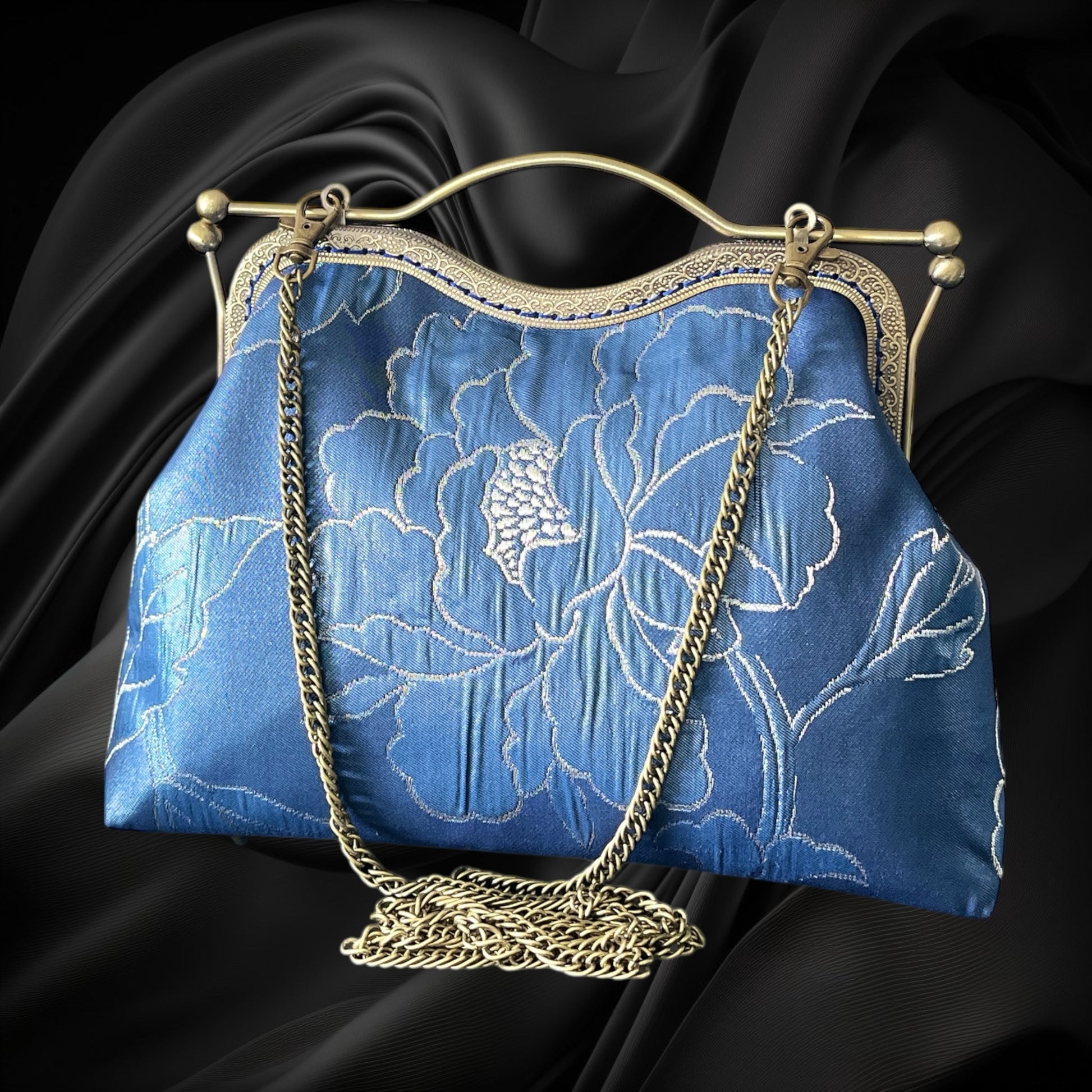 <着物オリジナルハンドバッグ・着物がま口ショルダーバッグ>