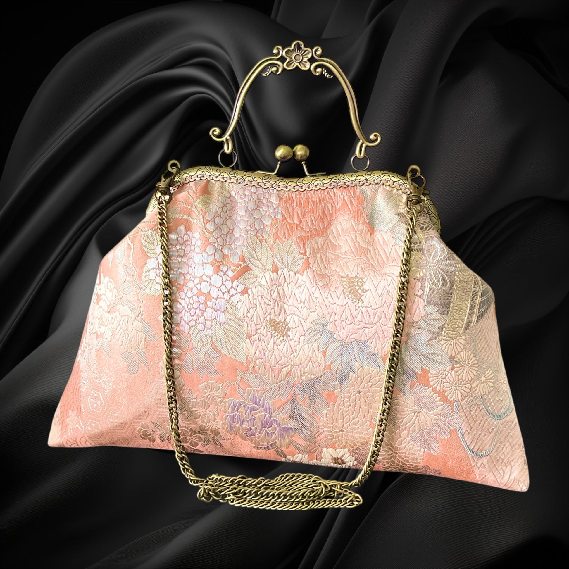 <着物オリジナルハンドバッグ・着物がま口ショルダーバッグ>