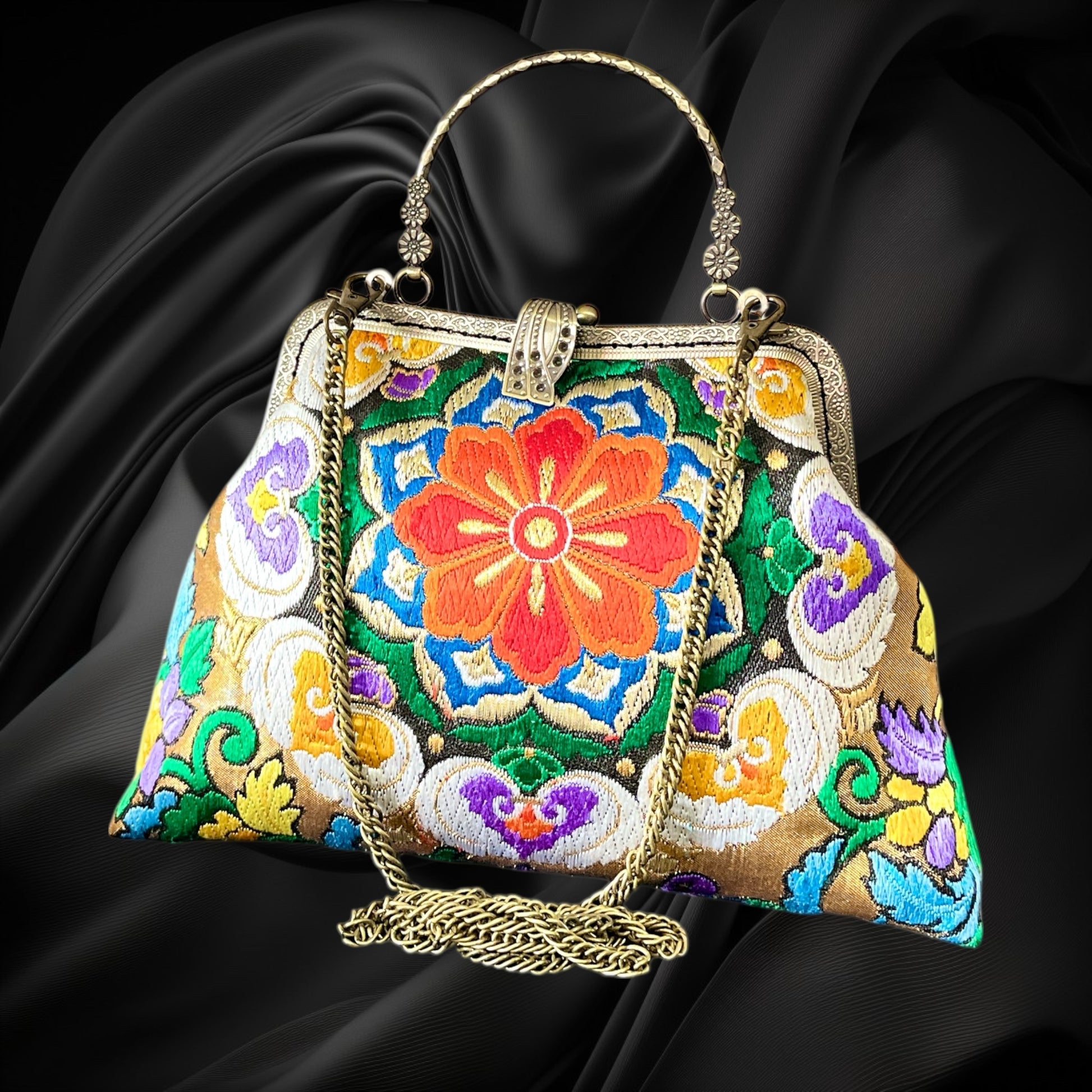 <着物オリジナルハンドバッグ・着物がま口ショルダーバッグ>