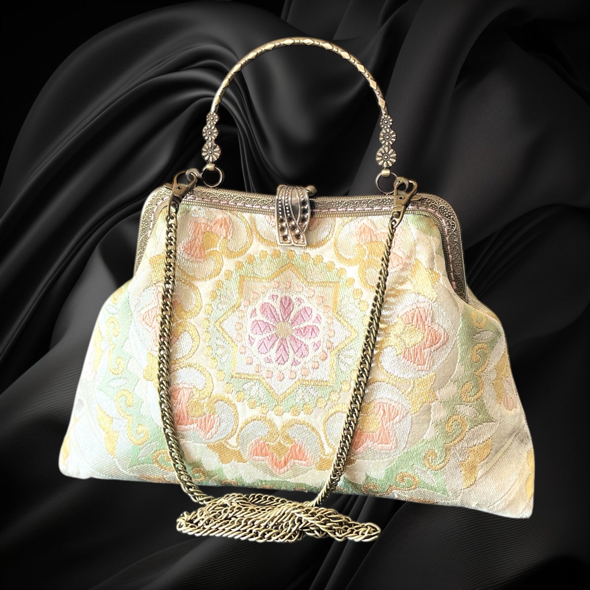 <着物オリジナルハンドバッグ・着物がま口ショルダーバッグ>