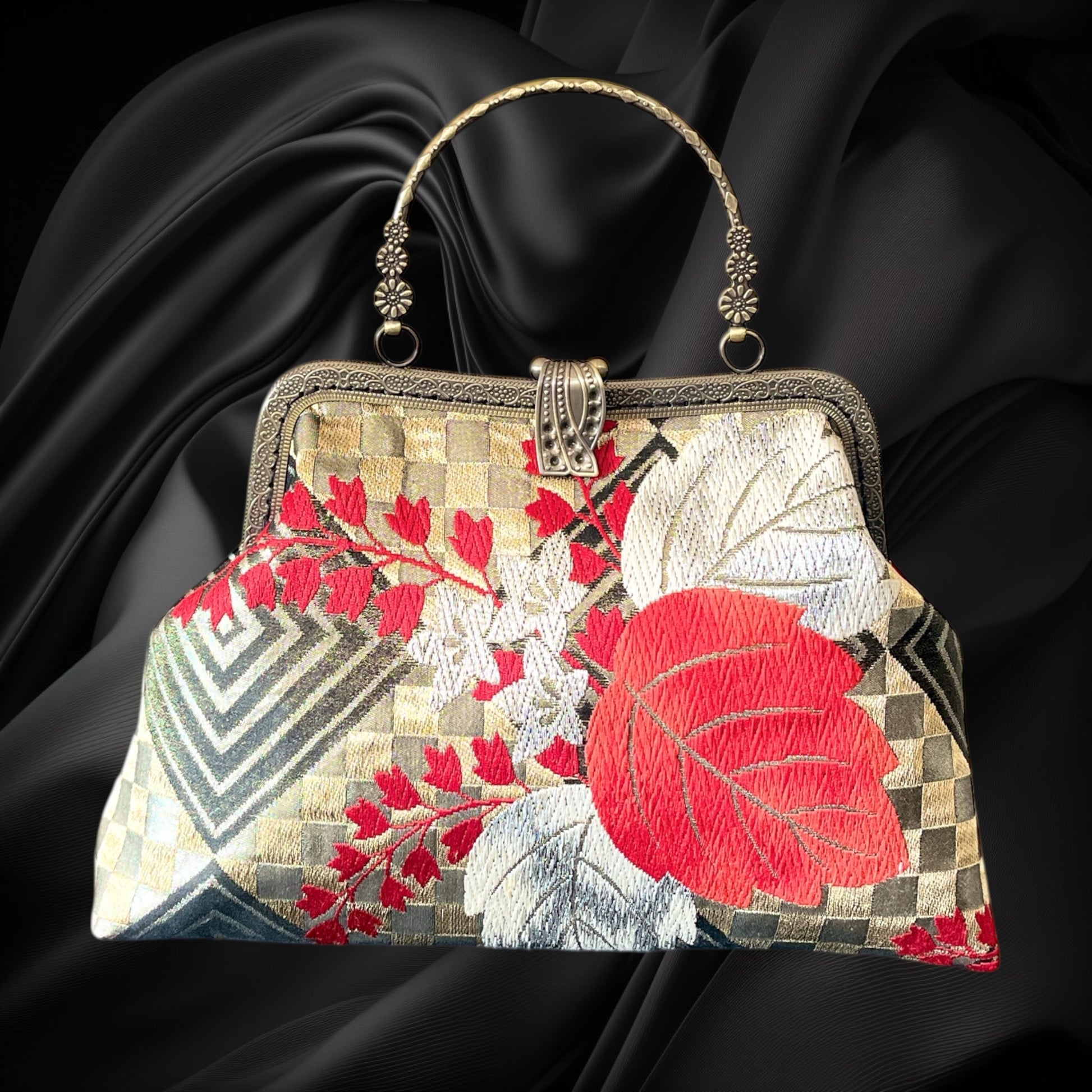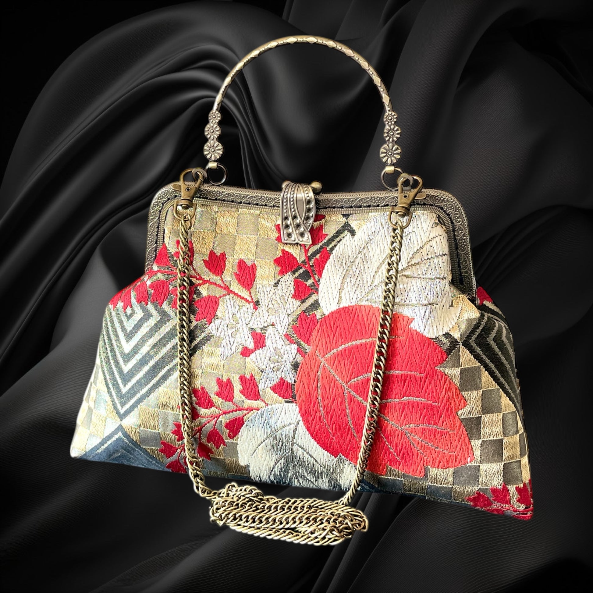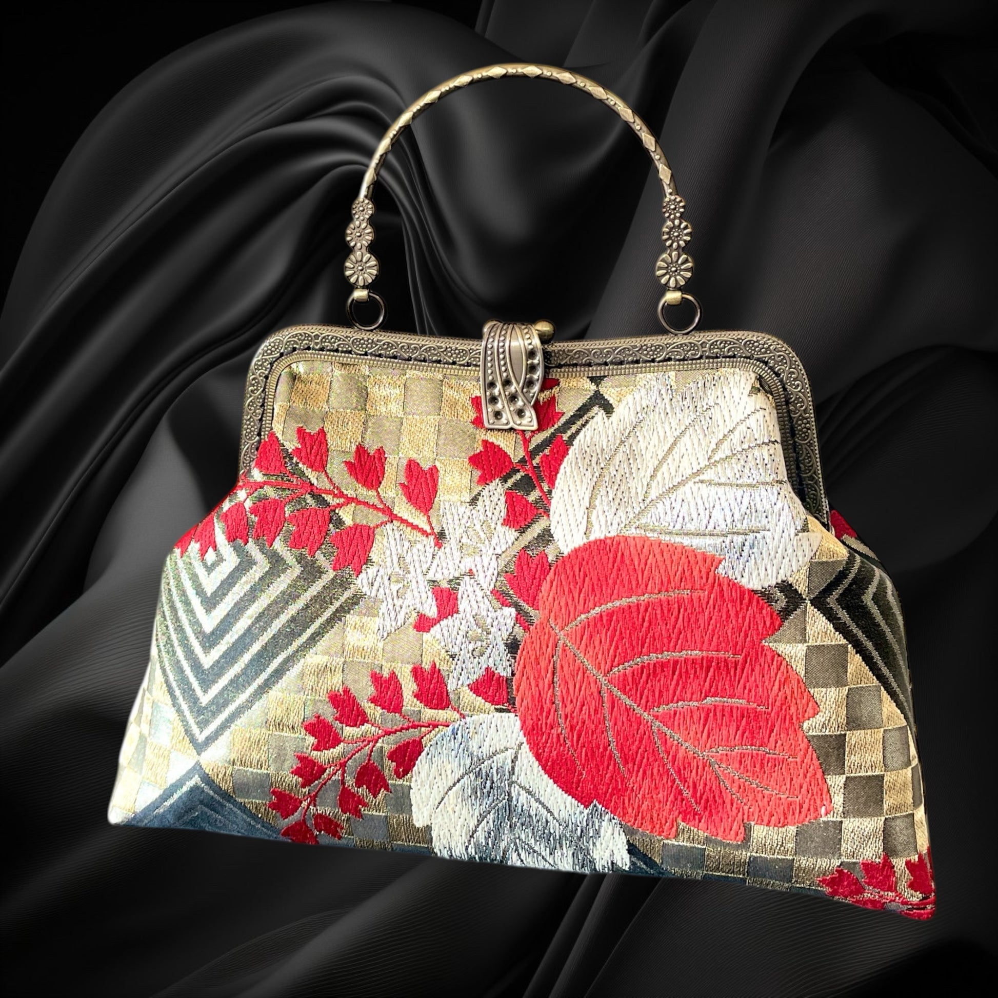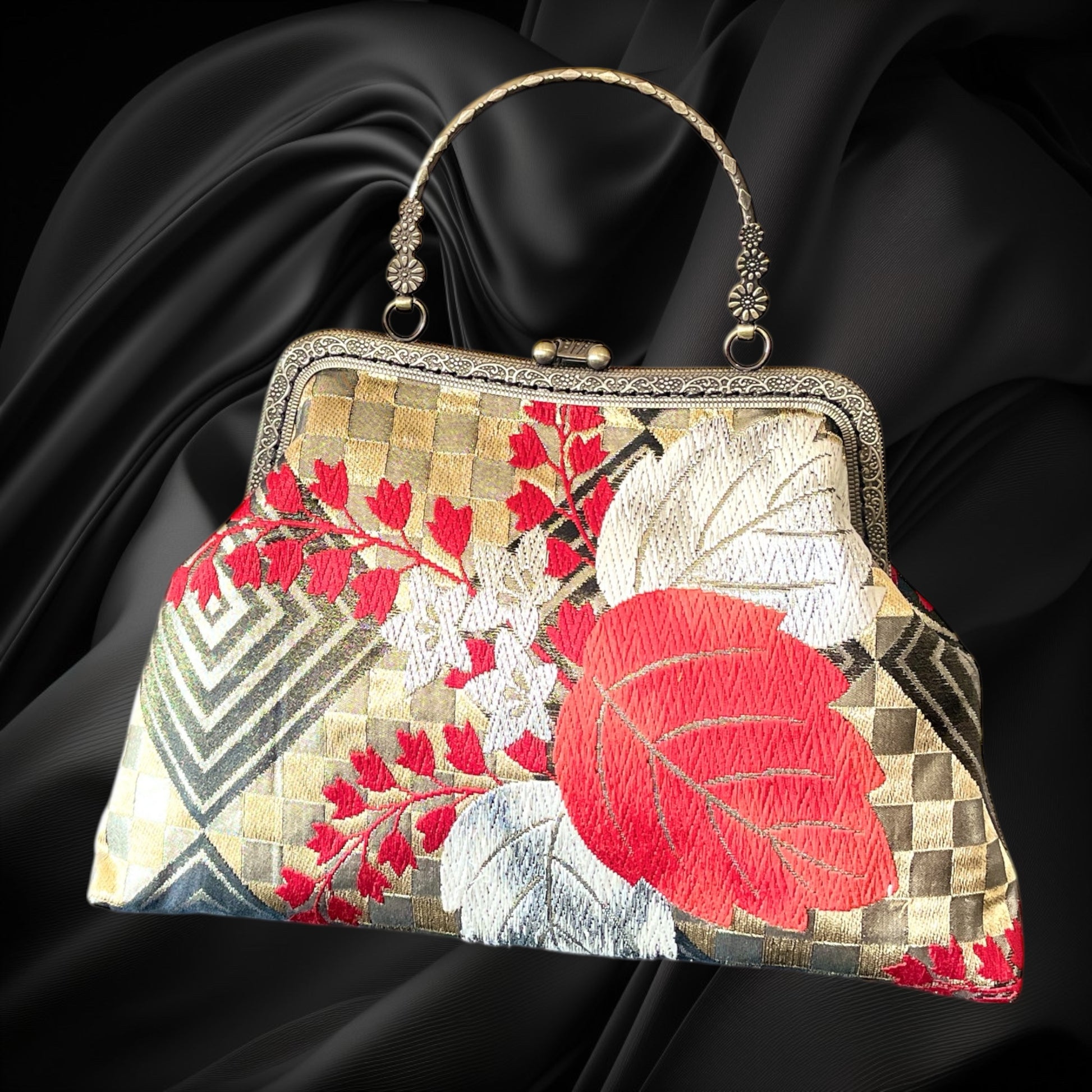 <着物オリジナルハンドバッグ・着物がま口ショルダーバッグ>