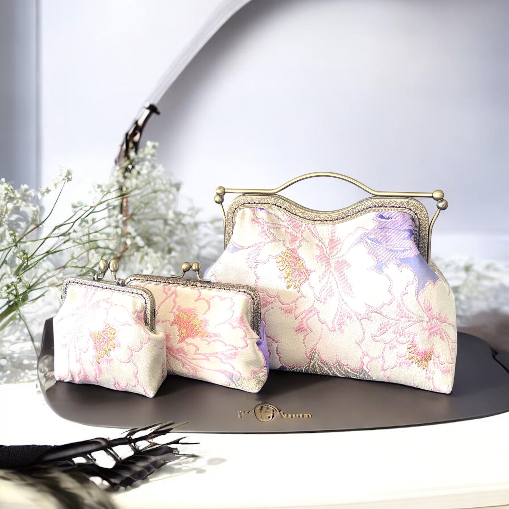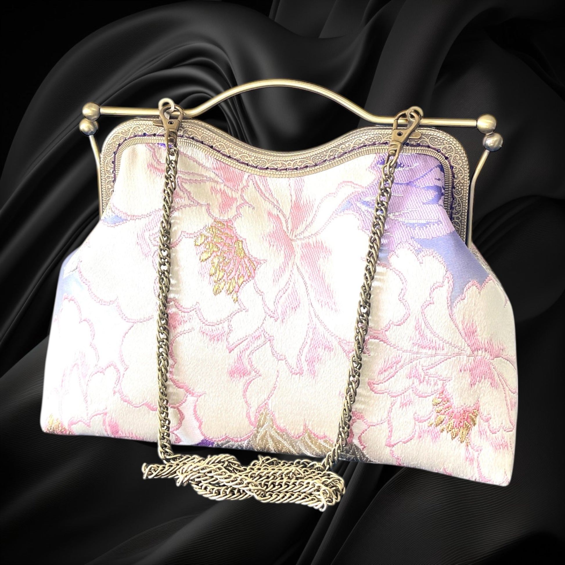 <着物オリジナルハンドバッグ・着物がま口ショルダーバッグ>