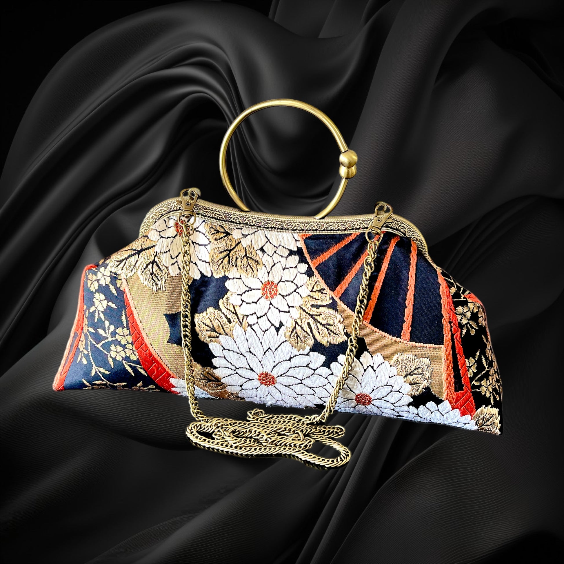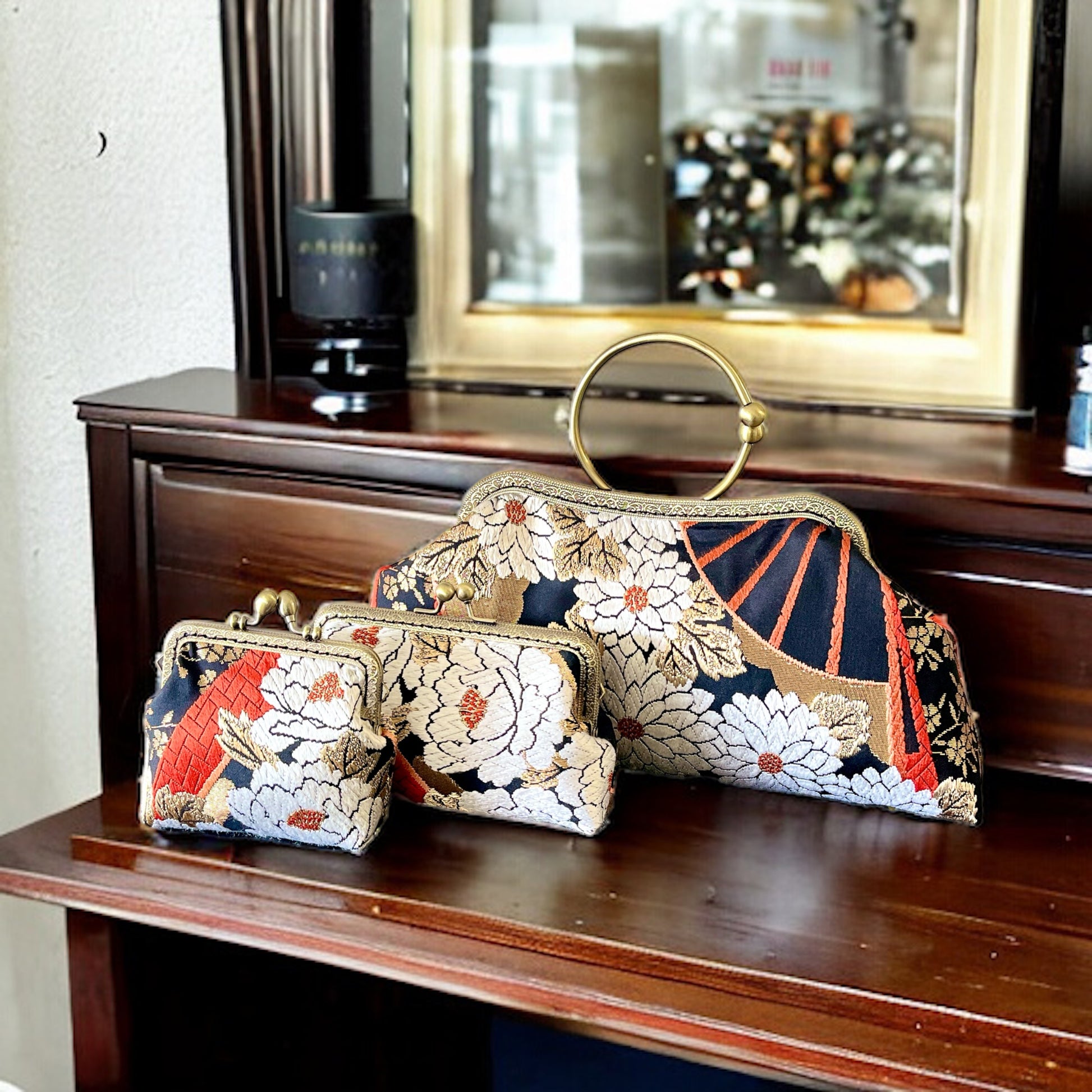 <着物オリジナルハンドバッグ・着物がま口ショルダーバッグ>