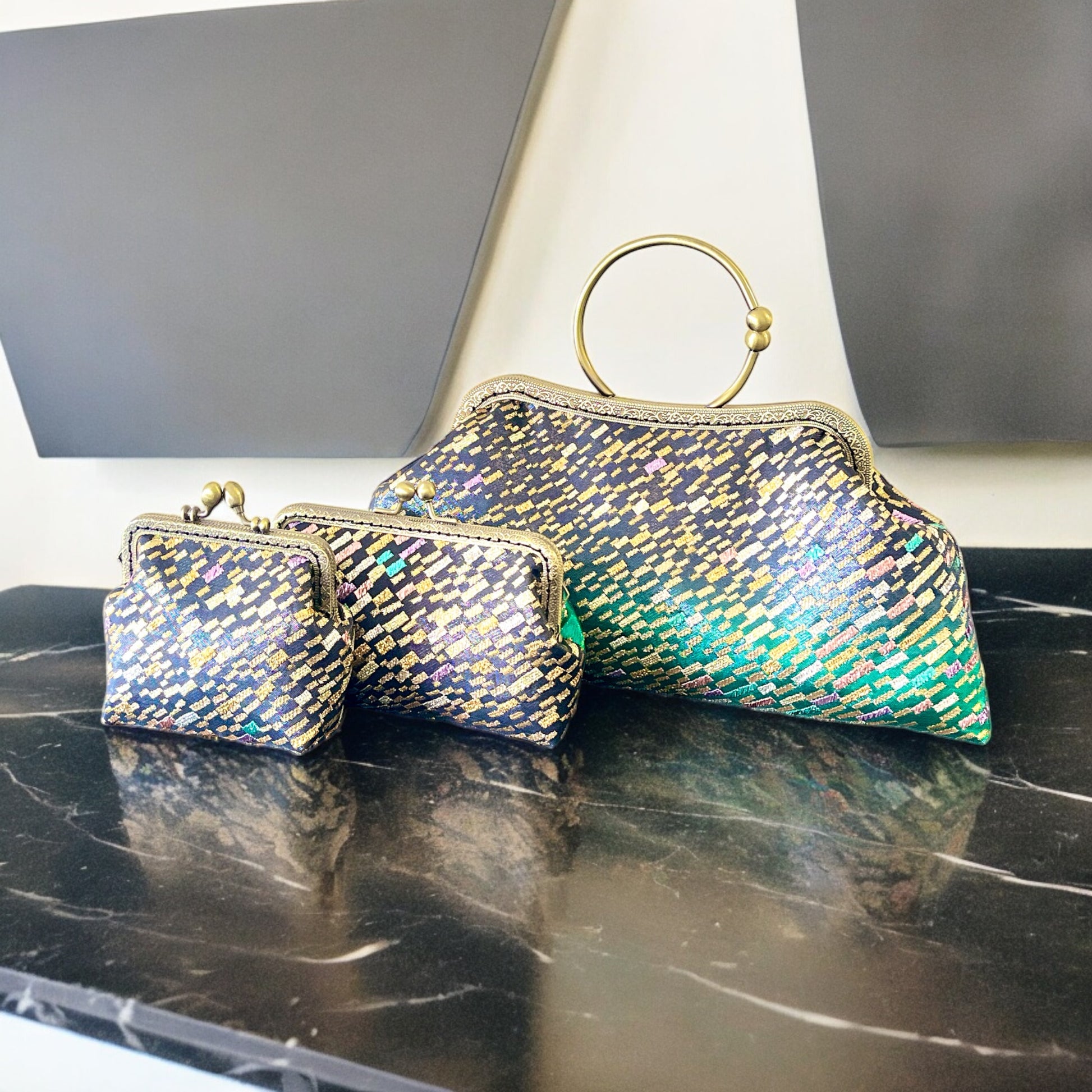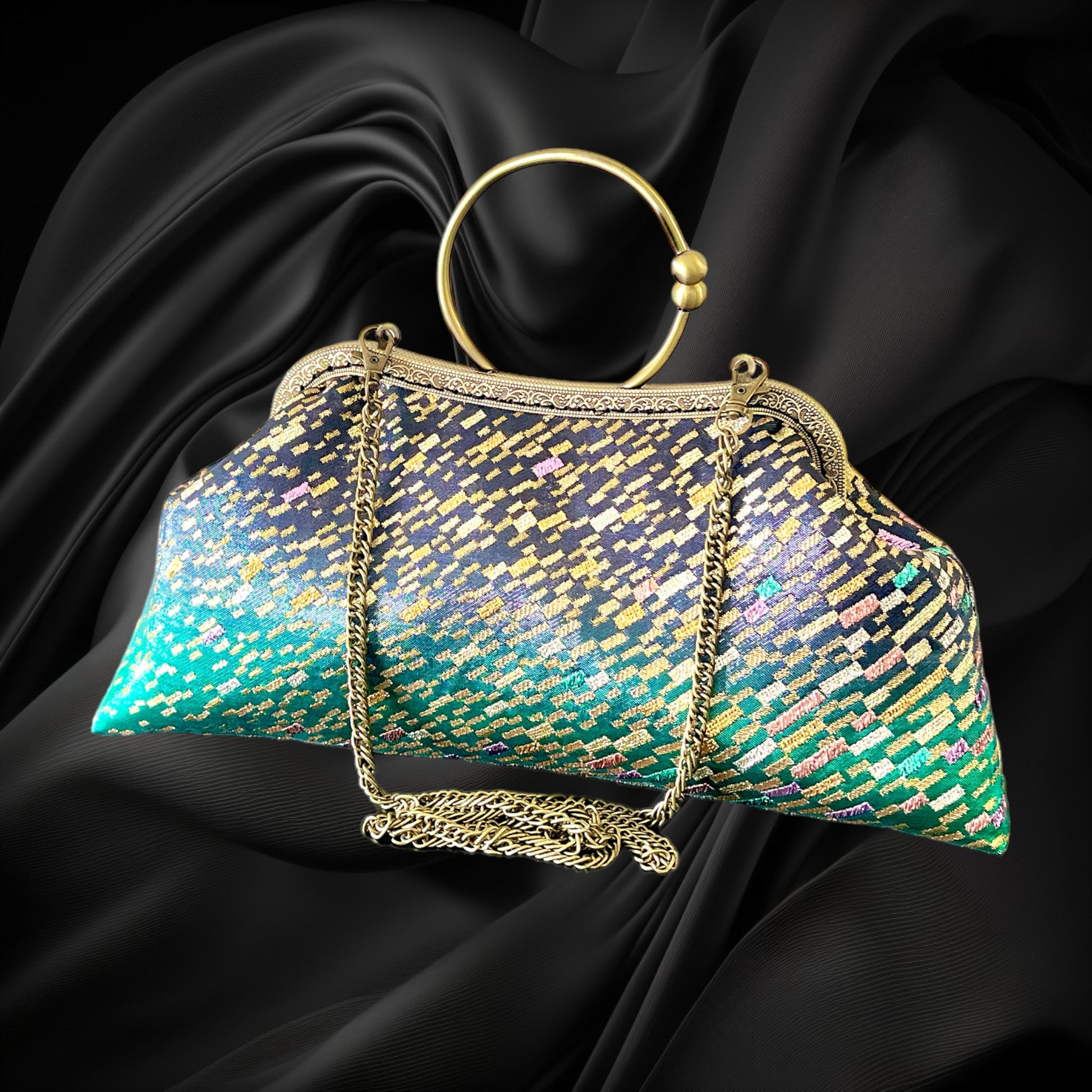<着物オリジナルハンドバッグ・着物がま口ショルダーバッグ>
