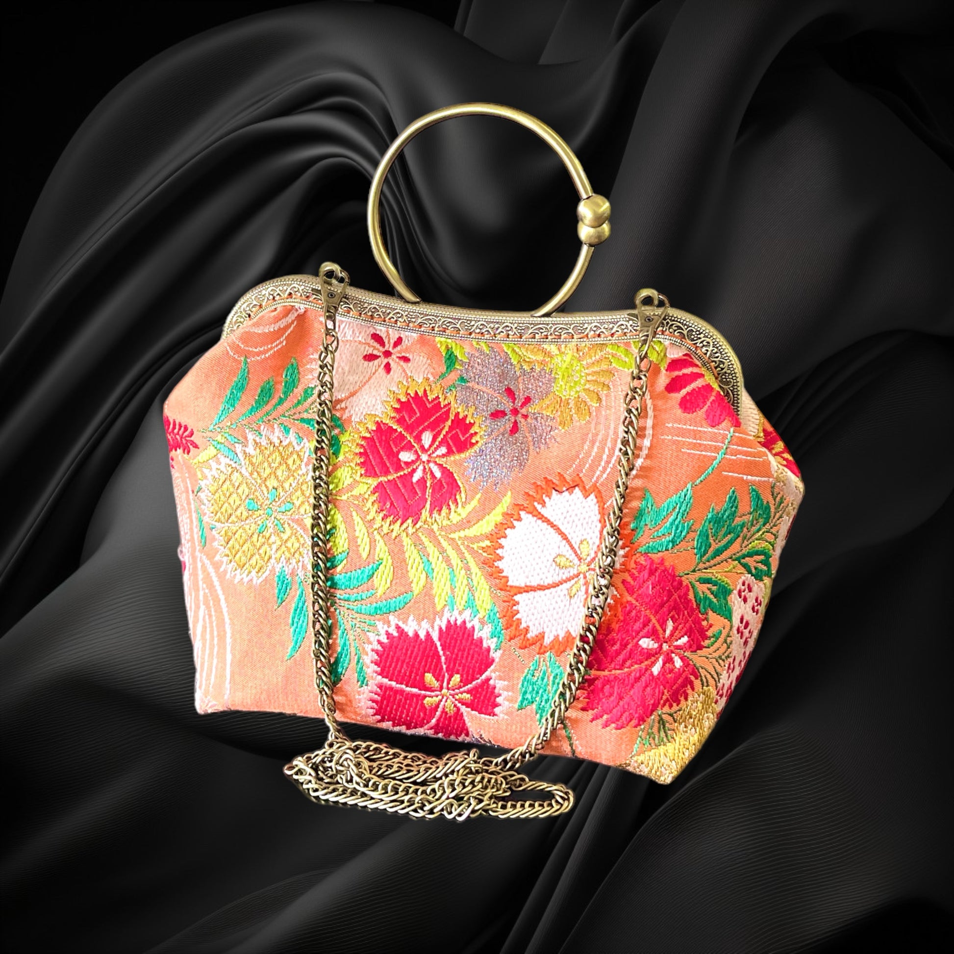 <着物オリジナルハンドバッグ・着物がま口ショルダーバッグ>