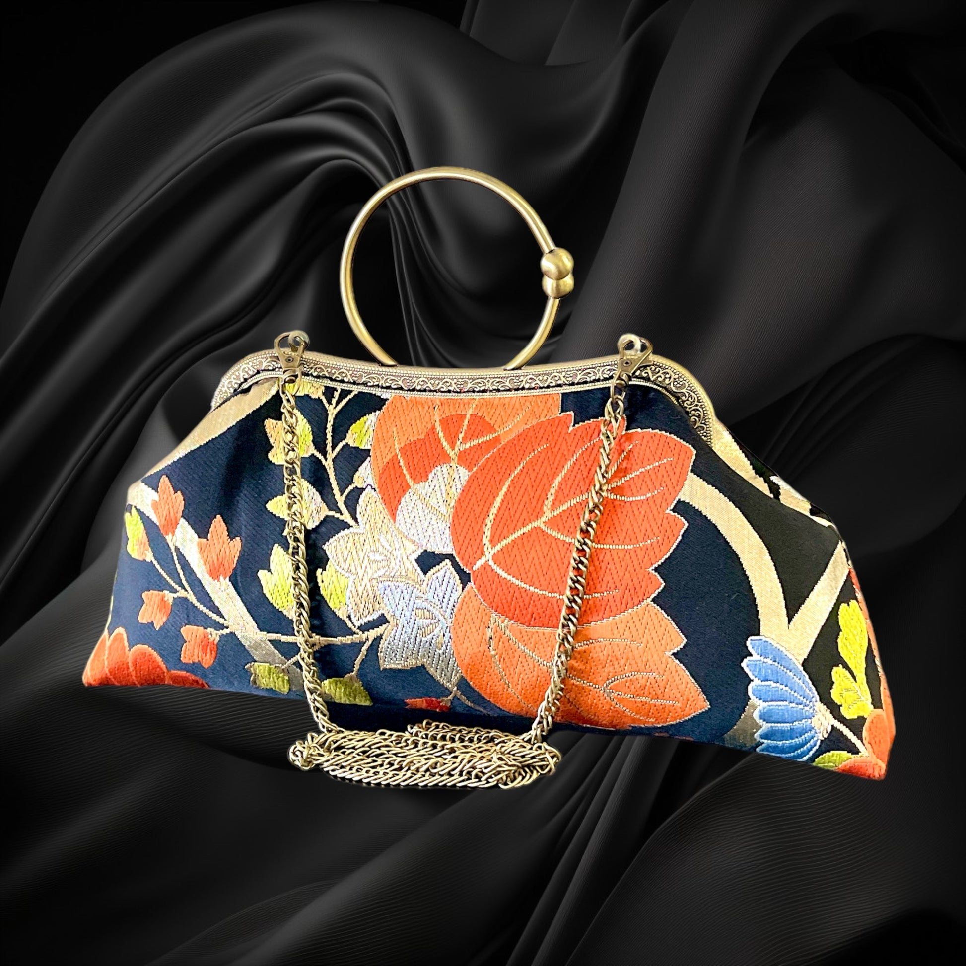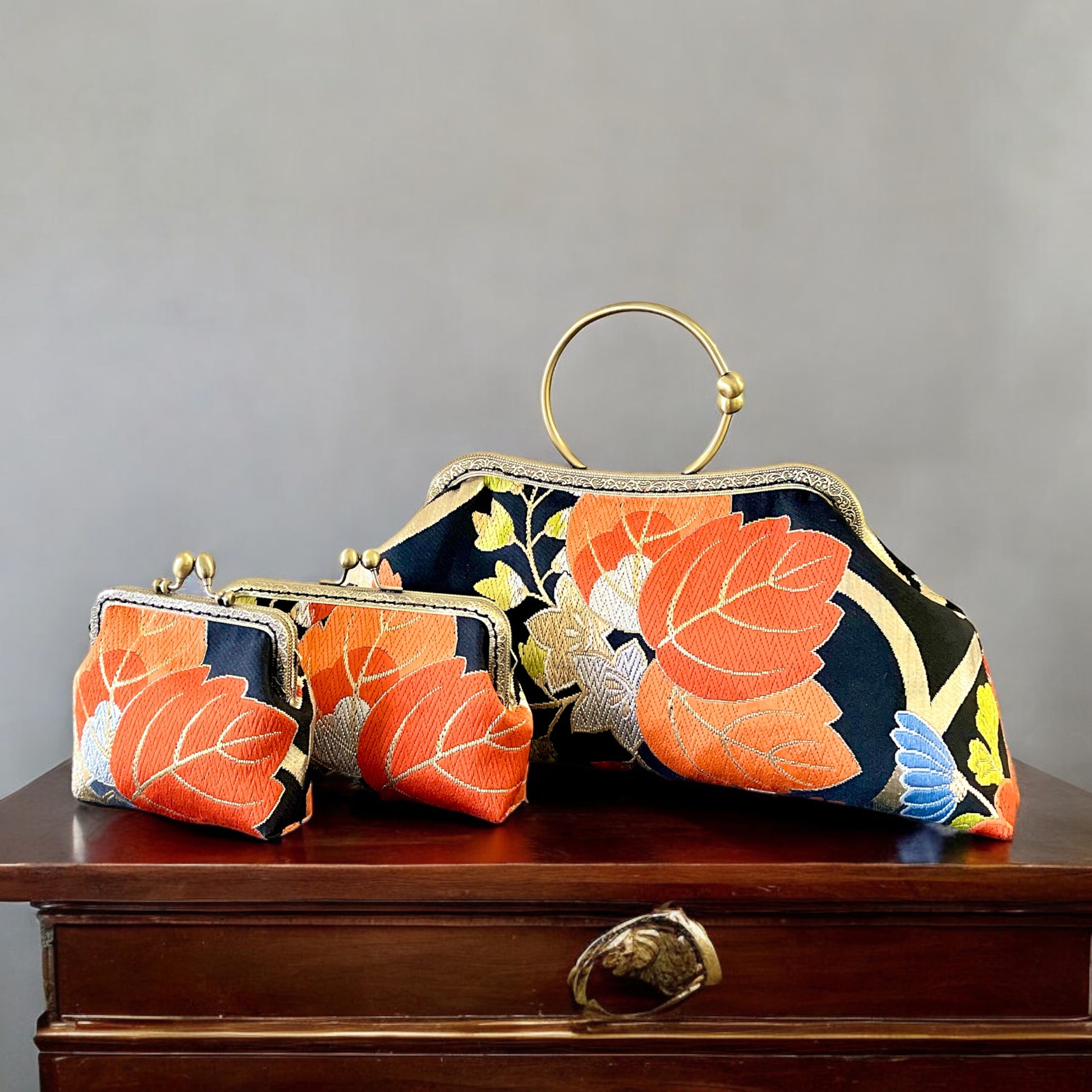 <着物オリジナルハンドバッグ・着物がま口ショルダーバッグ>