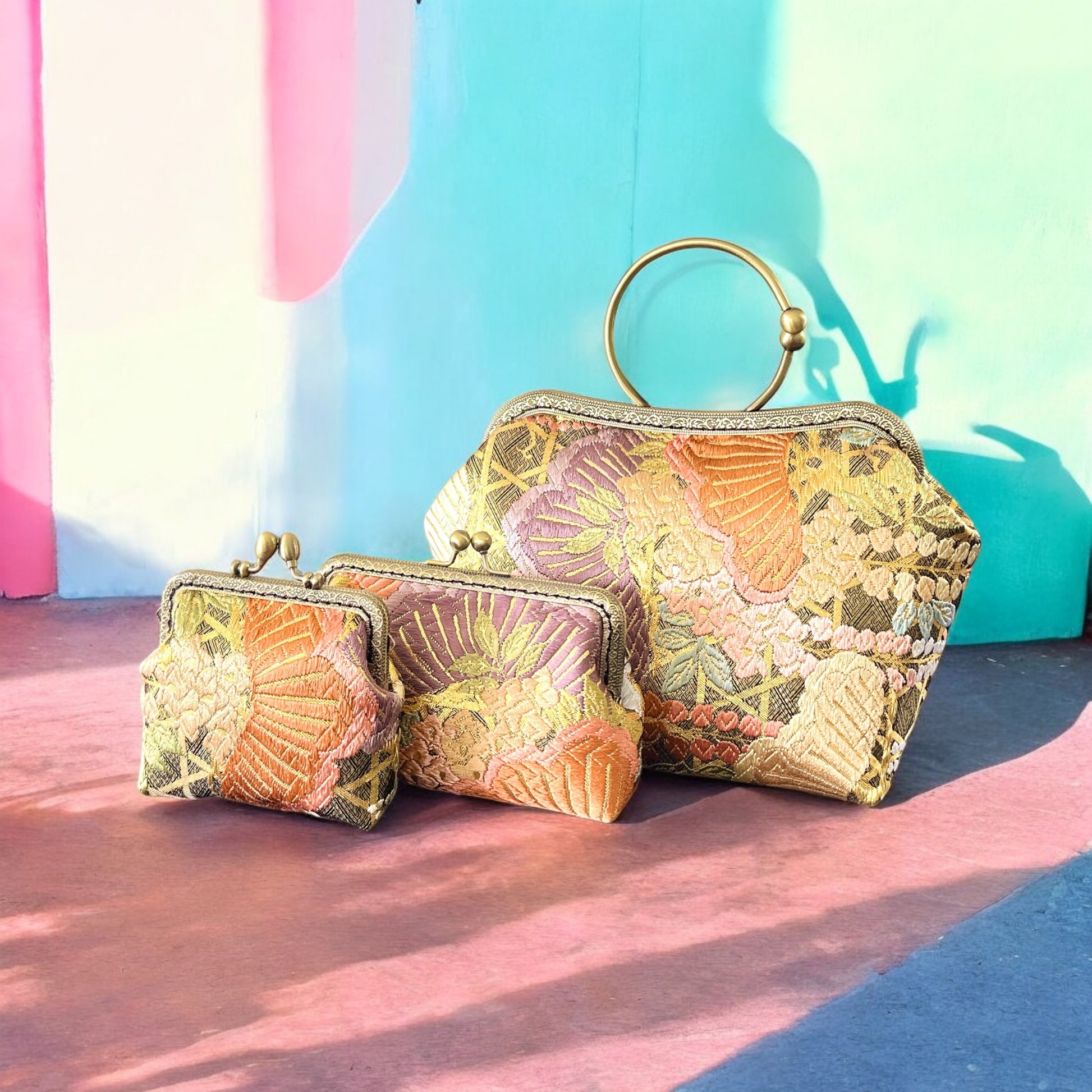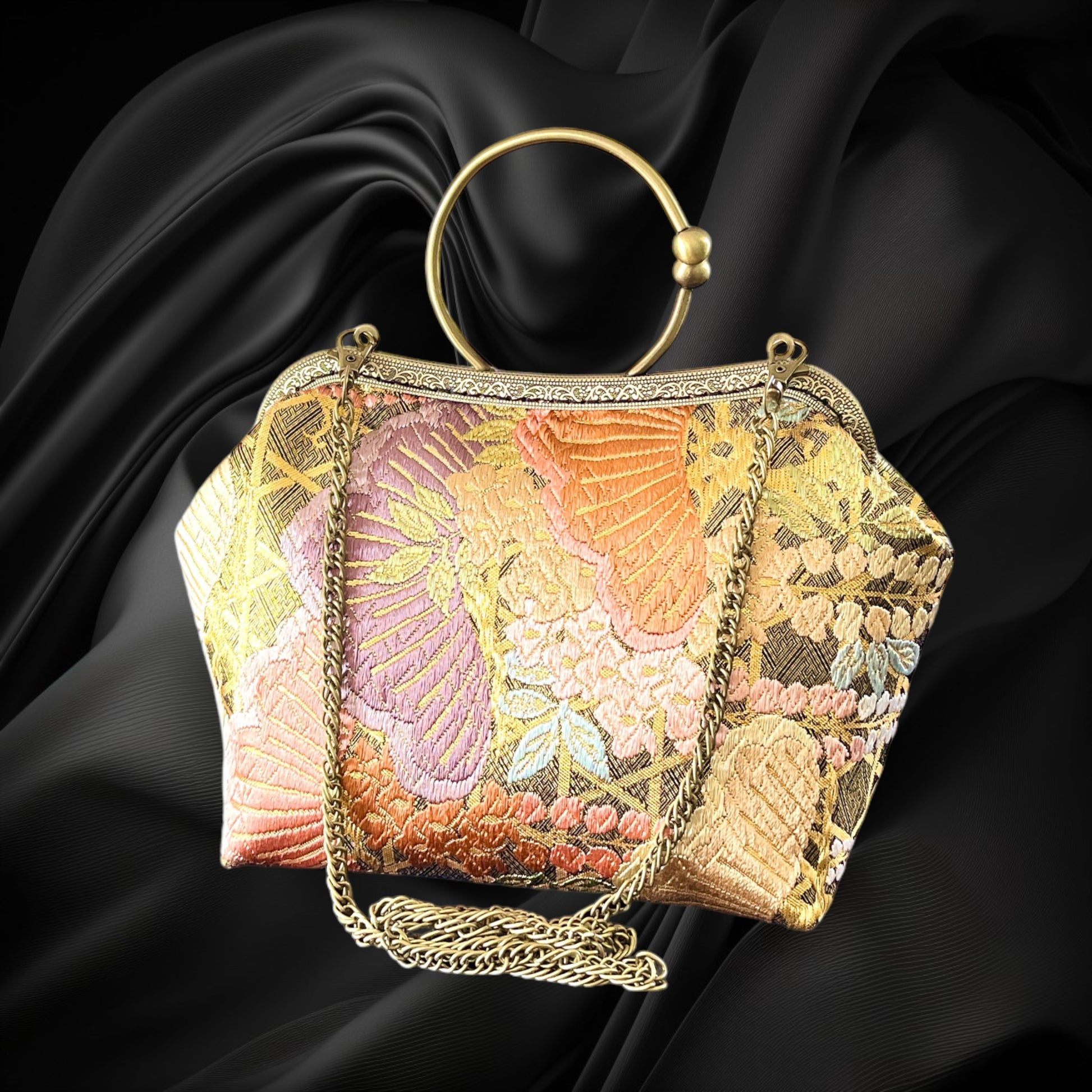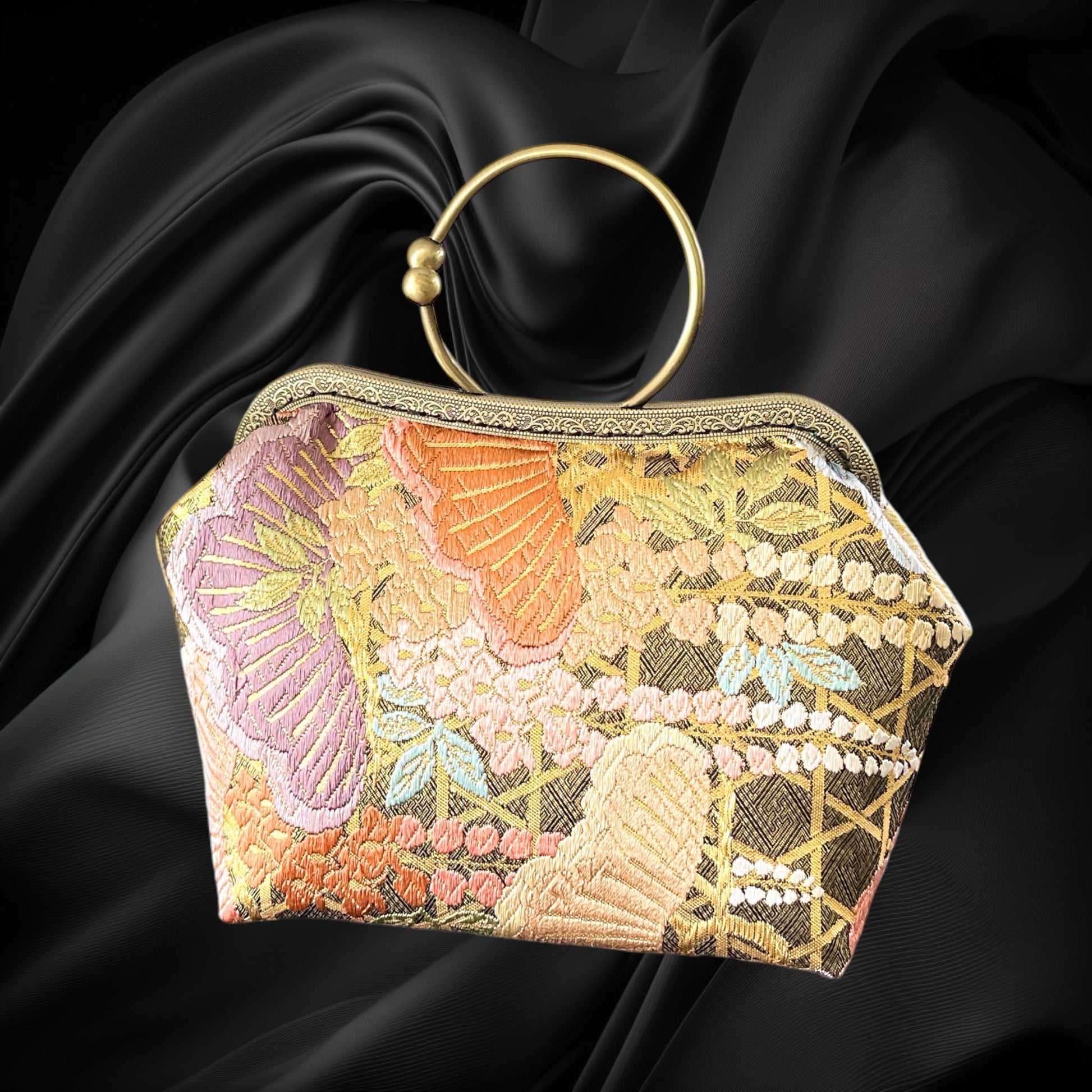 <着物オリジナルハンドバッグ・着物がま口ショルダーバッグ>