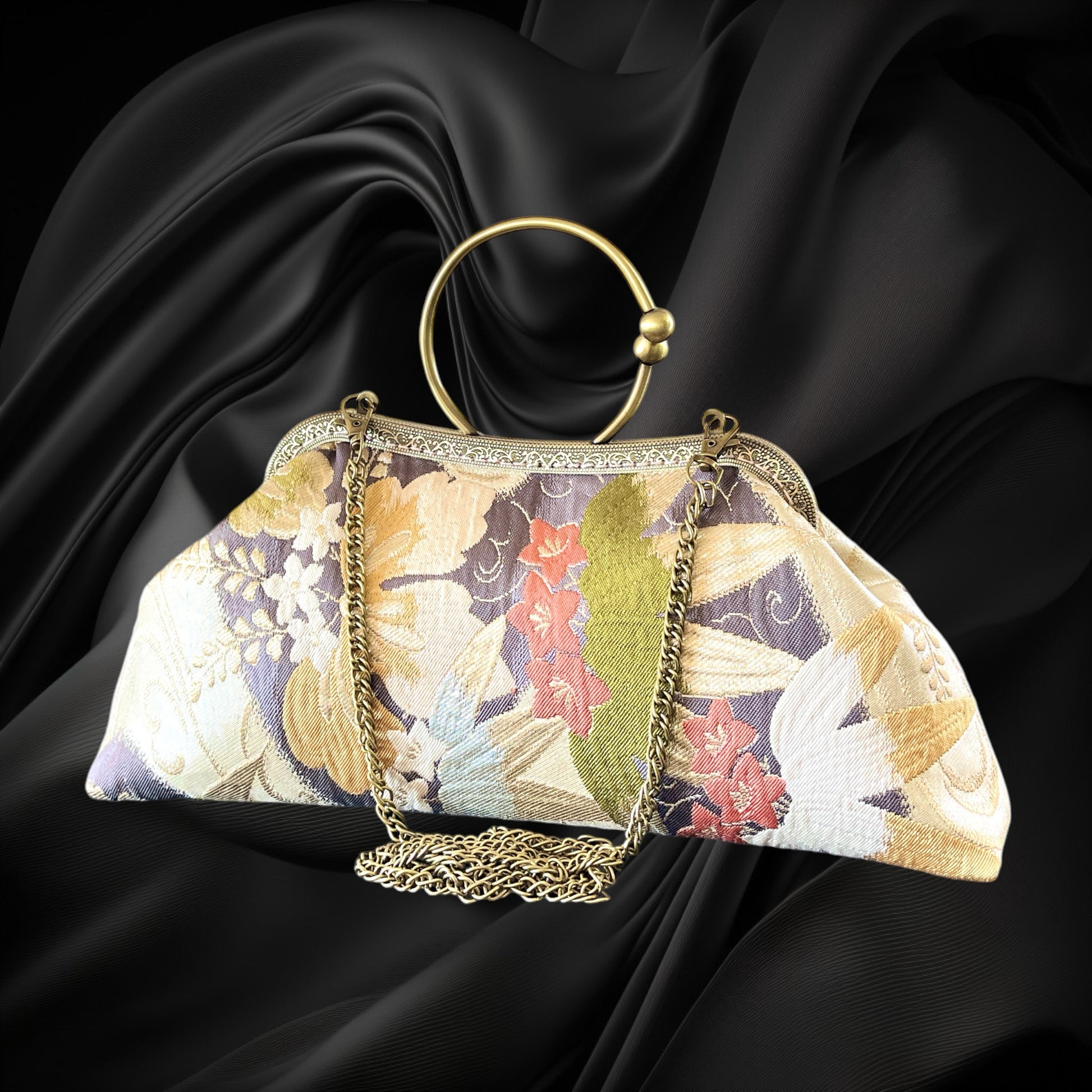 <着物オリジナルハンドバッグ・着物がま口ショルダーバッグ>